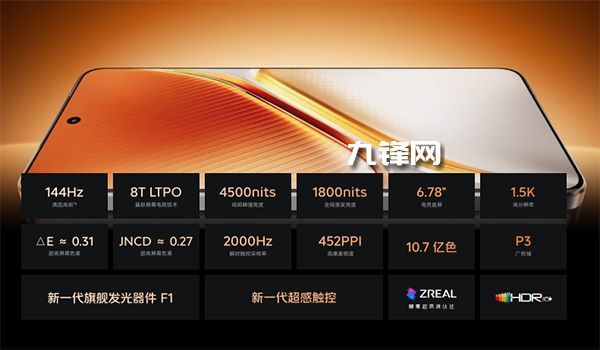 在屏幕上,該機配備了一塊6.78英寸的屏幕,擁有10.7億色顯示,分辨率為 2800×1260。屏幕刷新率為LTPO技術下的1-144Hz智能動態(tài)高刷,局部峰值亮度可達4500nit,全局激發(fā)亮度為1800nit,無論是在強光下還是在低光環(huán)境中,都能為用戶提供清晰、明亮的屏幕顯示效果。