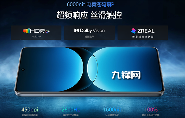 機(jī)身正面擁有一塊6.78英寸8T LTPO屏幕,分辨率為2780×1264,支持120Hz自適應(yīng)刷新率和2600Hz最高瞬時(shí)觸控采樣率,像素密度為450PPI,手動(dòng)亮度最高1000nit、全局激發(fā)亮度1600nit、局部峰值亮度6000nit,并且覆蓋了100%的P3超廣色域,擁有10.7億色彩和92.8的屏占比。