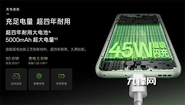 電池方面,該機(jī)內(nèi)置的5000mAh電池可以輕松支持一整天的使用,并且支持45W快充(不支持無(wú)線充電),即便在緊急情況下,短暫充電也能帶來(lái)持久使用體驗(yàn),這種設(shè)計(jì),無(wú)疑給習(xí)慣于高強(qiáng)度使用手機(jī)的用戶提供了良好的保障。