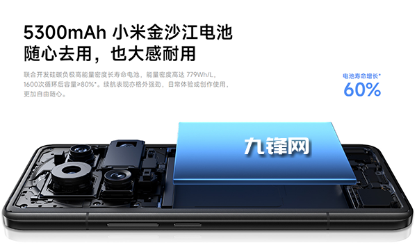 小米14 Ultra為了影像發(fā)起挑戰(zhàn),碩大的鏡頭模組需要將電池體積縮減8%,因此小米自研的金沙江電池誕生,它采用了小米最先進(jìn)的硅負(fù)極技術(shù),在電池體積減小的同時(shí),容量不降反升,并且配置了5300mAh的容量。