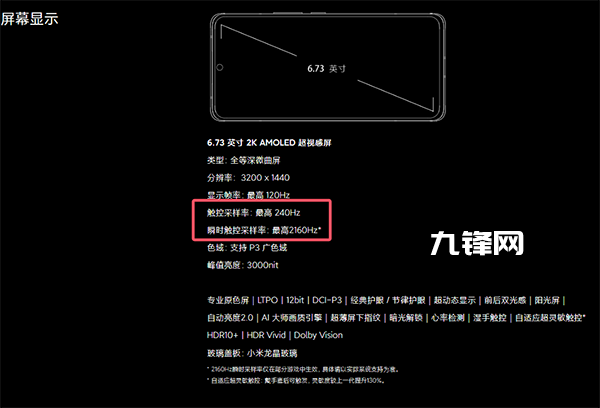 采樣率上,該屏幕的觸控采樣率最高240Hz,瞬時觸控采樣率最高2160Hz,這個2160Hz瞬時采樣率僅在部分游戲中生效。