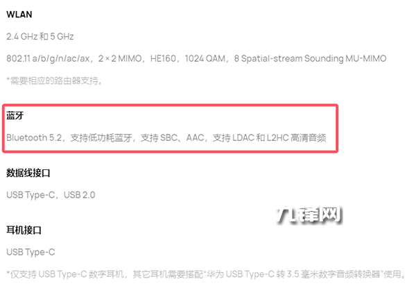 藍牙5.2,支持低功耗藍牙,并且支持SBC、AAC,支持 LDAC 和 L2HC 高清音頻。
