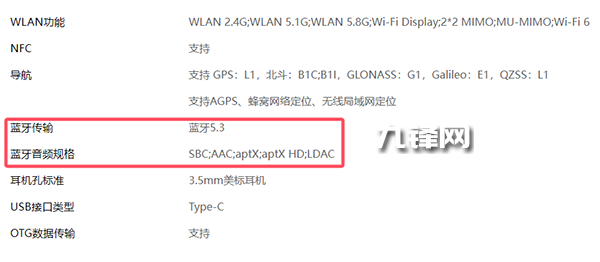 藍牙5.3,藍牙音頻規(guī)格支持SBC、AAC、aptX、aptX HD、LDAC。
