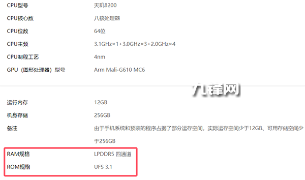 LPDDR5規(guī)格的內(nèi)存,UFS3.1規(guī)格的閃存。