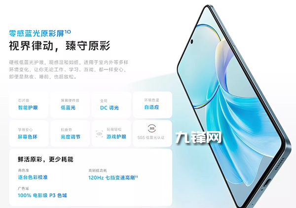 vivo Y100t屏幕參數(shù):尺寸是6.64英寸,分辨率是2388×1080(屬于1080P),LCD材質(zhì)的挖孔直屏,支持120Hz高刷新率(七擋變速),240Hz游戲觸控采樣率,亮度典型值480nit、峰值亮度500nit、激發(fā)亮度650nit,100%電影級(jí)P3色域,通過HDR10認(rèn)證,394 PPI,1500:1 對(duì)比度,全局DC調(diào)光、環(huán)境色溫自適應(yīng),通過SGS低藍(lán)光認(rèn)證;