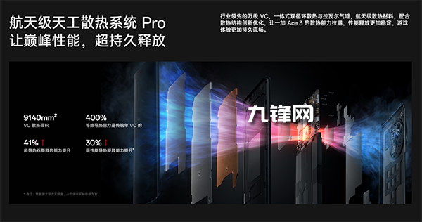配備了天工散熱系統(tǒng)Pro,該系統(tǒng)通過(guò)材料和結(jié)構(gòu)的優(yōu)化做到了9140mm2的VC散熱面積,其散熱效果是傳統(tǒng)單VC散熱結(jié)構(gòu)的400%。