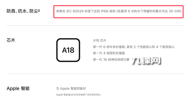 支持,蘋果iPhone 16e支持的是IP68級(jí)別的防水,并且在最深6米的水下停留時(shí)間最長(zhǎng)可達(dá)30分鐘。