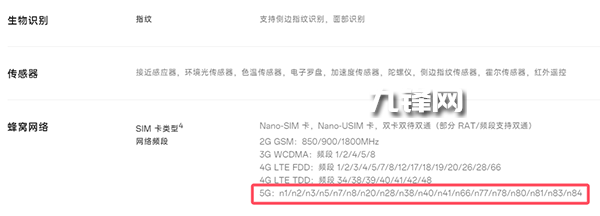 5G配置上,該機(jī)包含的5G頻段的5G頻段有:n1/n2/n3/n5/n7/n8/n20/n28/n38/n40/n41/n66/n77/n78/n80/n81/n83/n84。