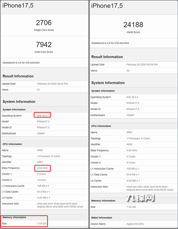 從跑分來看,iPhone 16e只跑出了單核2706/多核7942的成績。