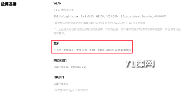 藍牙5.2,并且支持BLE,支持SBC、AAC,支持LDAC和L2HC高清音頻。