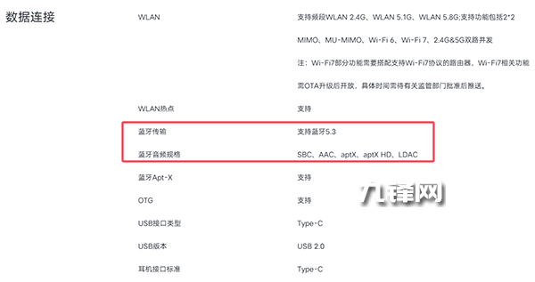 藍(lán)牙方面,該機配置的是藍(lán)牙5.3,并且支持SBC、AAC、aptX、aptX HD、LDAC。