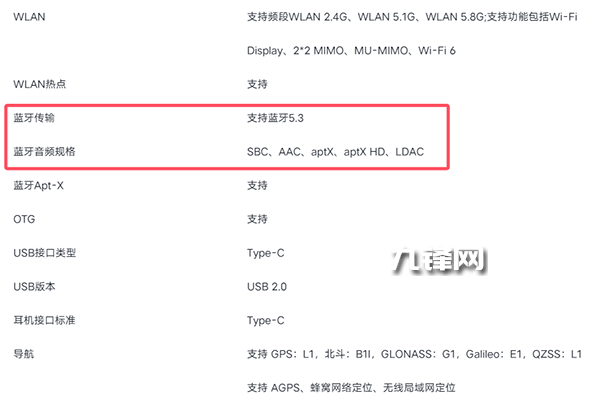 藍牙5.3,并且支持SBC、AAC、aptX、aptX HD、LDAC這些音頻規(guī)格。