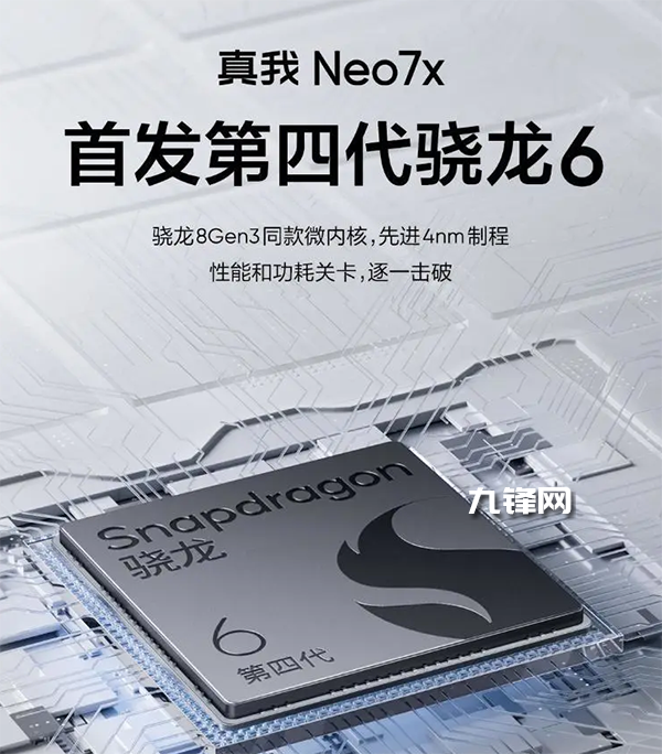 在硬件配置方面,真我Neo7x依靠第四代驍龍6處理器的強(qiáng)悍性能,給用戶(hù)提供流暢的操作體驗(yàn)。該處理器采用與驍龍8 Gen3同款的微內(nèi)核架構(gòu)及4nm制程工藝,處理速度與能效均有顯著提升。