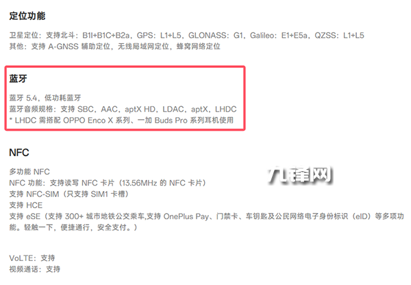 藍(lán)牙5.4,低功耗藍(lán)牙,另外它的藍(lán)牙音頻規(guī)格上支持SBC,AAC,aptXHD,LDAC,aptX,LHDC。