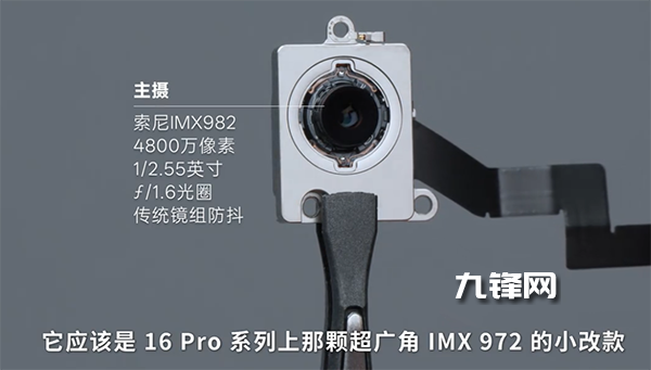 也就是說,蘋果iPhone 16e配置了一個4800萬像素融合式的主攝鏡頭,采用的是1/2.55英寸的索尼IMX982傳感器。