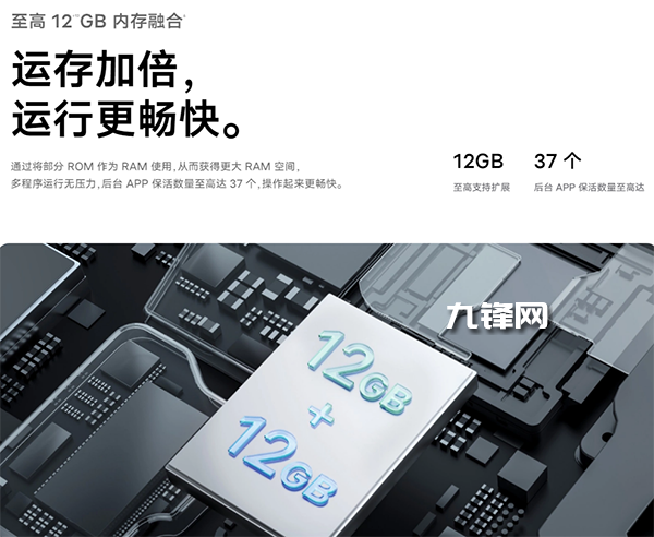 支持內(nèi)存融合3.0,通過算法將RAM和ROM優(yōu)化融合,調(diào)用部分閑置 ROM作為RAM 運(yùn)行 ,可以實(shí)現(xiàn) “ 等效 12GB+12GB”的超大運(yùn)存,在處理多任務(wù)時(shí)更為迅速。