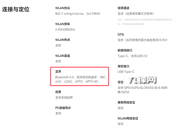 榮耀5.3,支持低功耗藍(lán)牙,音頻規(guī)格上支持SBC、AAC、LDAC、APTX、APTX HD。