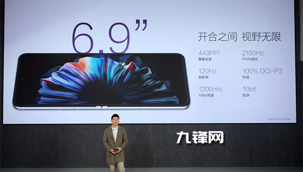 內(nèi)屏:尺寸是6.9英寸,分辨率是2790×1188,(屬于1.5K級別),OLED柔性屏(抗壓抗沖柔性鎧甲膜),120Hz高刷新率,443ppi,10bit色深,峰值亮度1200nit,支持高亮度DC調(diào)光,低亮度下2160Hz高頻PWM調(diào)光,10bit色深;