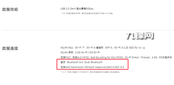 藍牙5.4,Dual-Bluetooth,在音頻規(guī)格上支持AAC/AptX/AptX HD/AptX Adaptive/LDAC/LHDC 5.0。