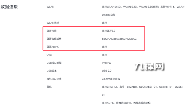 藍(lán)牙5.3,在音頻規(guī)格上支持SBC、AAC、aptX、aptXHD、LDAC。
