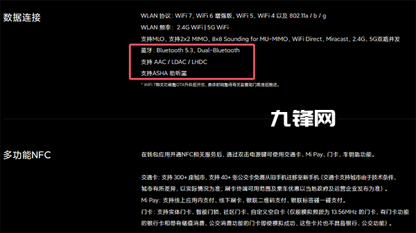 藍(lán)牙5.3,Dual-Bluetooth,音頻規(guī)格上支持AAC/LDAC/LHDC,支持ASHA助聽器。