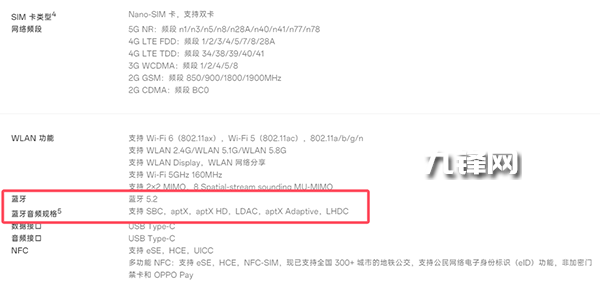 藍(lán)牙5.2,在藍(lán)牙音頻規(guī)格上支持SBC,aptX,aptX HD,LDAC,aptX Adaptive,LHDC。