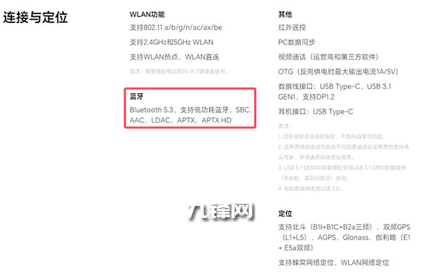 藍(lán)牙5.3,支持低功耗藍(lán)牙、SBC、AAC、LDAC、APTX、APTX HD。