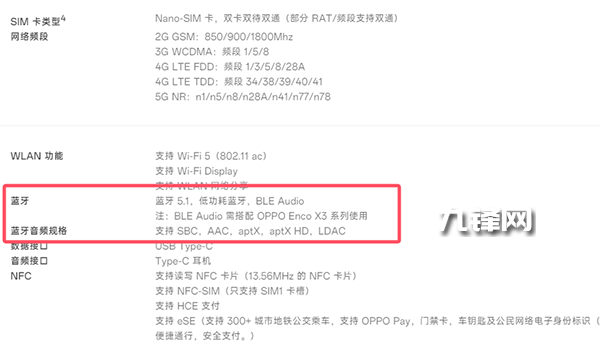 藍(lán)牙方面,該機(jī)配置的是藍(lán)牙5.1,低功耗藍(lán)牙,BLE Audio,藍(lán)牙音頻規(guī)格支持SBC,AAC,aptX,aptX HD,LDAC。