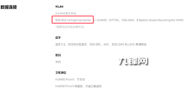 支持,華為Pura X搭載了麒麟9020處理器,并且支持WIFI7(也就是802.11a/b/g/n/ac/ax/be)網(wǎng)絡(luò)協(xié)議。