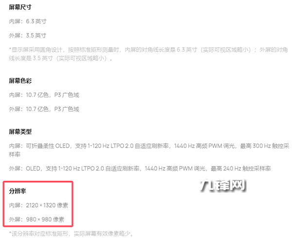 分辨率上,內(nèi)屏分辨率是2120x1320,屬于是1.5K級別,更達不到2K,外屏分辨率是980x980,低于1080P。