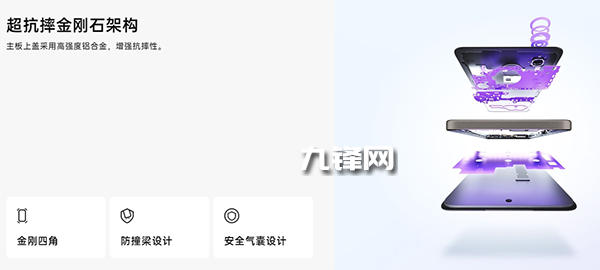 此外,還采用超抗摔金剛石架構(gòu),機(jī)身內(nèi)部,邊框四角、中框都加入了多項(xiàng)抗跌落設(shè)計(jì),當(dāng)發(fā)生碰撞、跌落等突發(fā)情況時(shí),保證機(jī)身堅(jiān)固不受損。