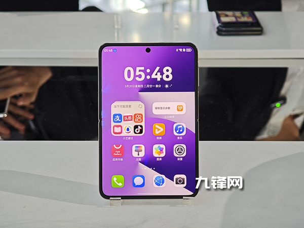 在這個外觀上,這一代的華為Pura X展開尺寸為143.2x91.7x7.15mm,其中91.7mm的寬度對手小的人來說確實不太友好。其外屏是一塊3.5英寸的1:1方形屏幕,折疊后看起來像個小方塊,別具一格。