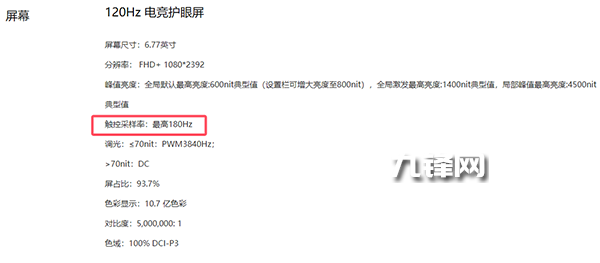 屏幕上采用了一塊6.77英寸10.7億色彩FHD+ OLED曲面屏,支持120Hz刷新率,180Hz觸控采樣率,支持4500nits峰值亮度,支持3840Hz高頻PWM調光,對于經(jīng)??匆曨l、玩游戲的用戶來說,這塊屏幕的流暢度和護眼性都挺不錯。