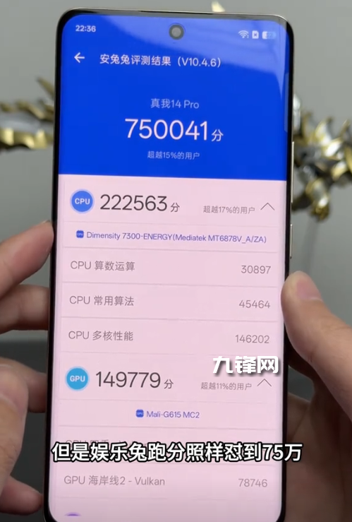 75萬(wàn)分,realme真我14 Pro搭載的是聯(lián)發(fā)科天璣7300處理器,該機(jī)在安兔兔的跑分在75萬(wàn)分左右。