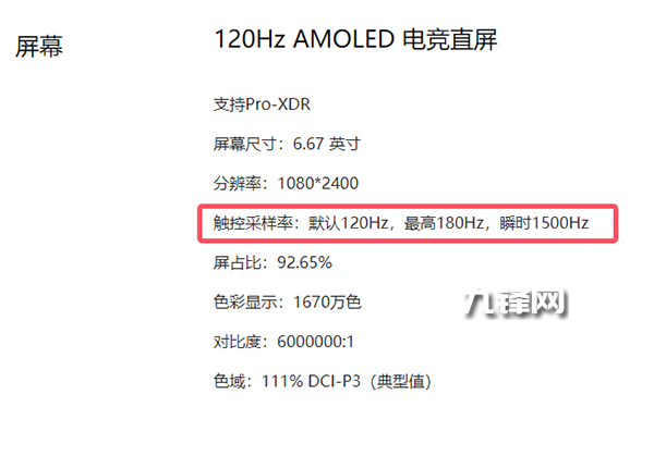 觸控采樣率默認120Hz,最高180Hz,瞬時觸控采樣率最高可達1500Hz。