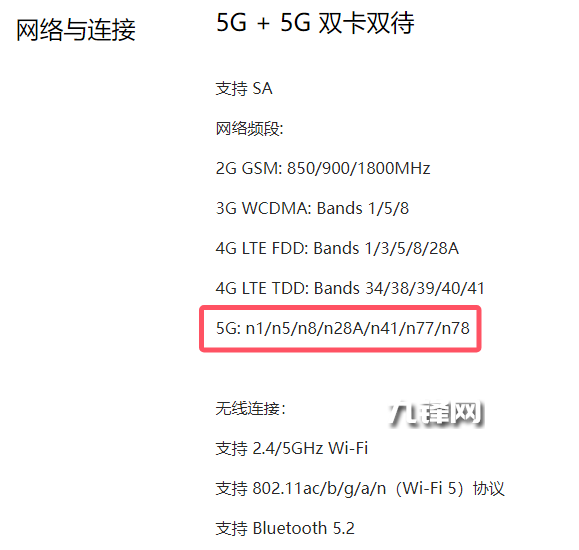 網(wǎng)絡(luò)的配置上,該機是支持5G的,并且包含了n1/n5/n8/n28A/n41/n77/n78這些5G頻段。