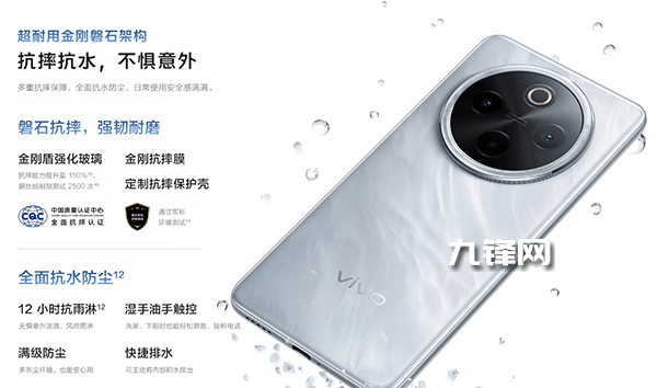 同時(shí),vivo Y300 Pro+還具備IP6X防護(hù)能力,結(jié)合金剛盾玻璃與超堅(jiān)韌抗摔結(jié)構(gòu),通過了SGS五星整機(jī)抗跌耐摔認(rèn)證,展現(xiàn)了其強(qiáng)大的耐用性。