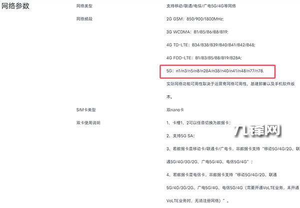 網(wǎng)絡(luò)方面,該機是支持5G的,并且包含了n1/n3/n5/n8/n28A/n38/n40/n41/n48/n77/n78。
