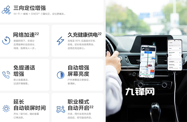 還有五頻三向精準(zhǔn)導(dǎo)航系統(tǒng)(雙頻GPS+三頻北斗+AGPS定位、無(wú)線(xiàn)局域網(wǎng)定位和蜂窩網(wǎng)絡(luò)定位三向定位)讓手機(jī)定位更加準(zhǔn)確,就算是在重慶這個(gè)“8D城市”,走街串巷迷路的概率都降低不少。職業(yè)模式(“設(shè)置”中的“輔助功能”中打開(kāi))仍然保留,為外賣(mài)、快遞配送人員提供更多便捷,其中包括“免提通話(huà)增強(qiáng)”“延長(zhǎng)自動(dòng)鎖屏?xí)r間”等功能。