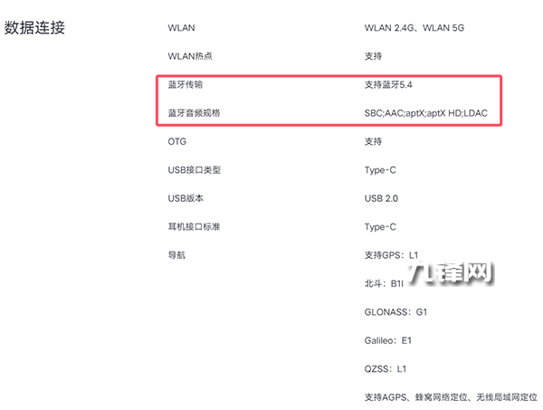 藍(lán)牙方面,該機(jī)配置的是藍(lán)牙5.4,在音頻規(guī)格上支持SBC、AAC、aptX、aptX HD、LDAC。
