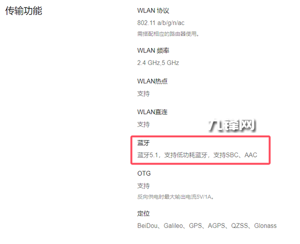 藍牙方面,該機配置的是藍牙5.1,并且支持低功耗藍牙,支持SBC、AAC。