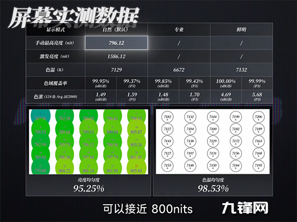 手動亮度是800nit,全局峰值亮度1600nit,局部峰值亮度4500nit。
