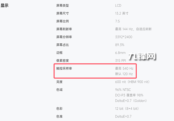觸控采樣率最高540Hz,默認(rèn)是120Hz。