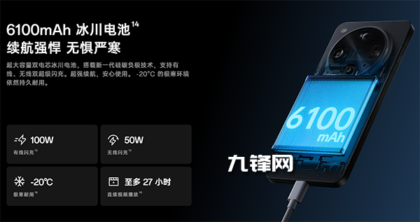 續(xù)航:6000mAh冰川電池+80W有線充電+50W無線充電+10W無線反向充電;