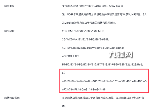5G頻段:n1/n2/n3/n5/n7/n8/n12/n18/n20/n25/n26/n28/n38/n40/n41/n48/n66/n77/n78/n79/n80/n81/n83/n84/n89。