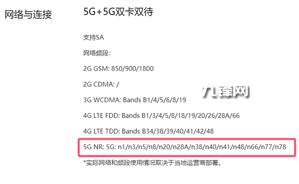 網(wǎng)絡(luò)方面,該機(jī)是支持5G的,并且包含了n1/n3/n5/n8/n20/n28A/n38/n40/n41/n48/n66/n77/n78這些5G頻段。