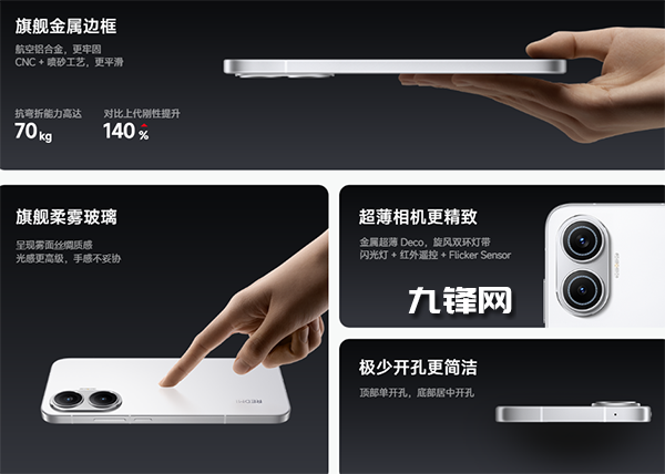 此外,還升級旗艦柔霧玻璃后蓋,采用700nm精細打磨工藝,平滑度提升30%,讓背部呈現(xiàn)霧面絲綢質(zhì)感,質(zhì)感和手感可對標(biāo)旗艦機型。
