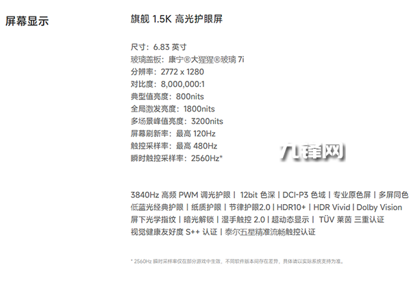 屏幕素質(zhì)方面,提供了一塊6.83英寸的1.5K直屏,分辨率來到了2772*1280,屬于是1.5K級(jí)別,達(dá)不到2K,像素密度達(dá)到447ppi,顯示效果非常細(xì)膩。