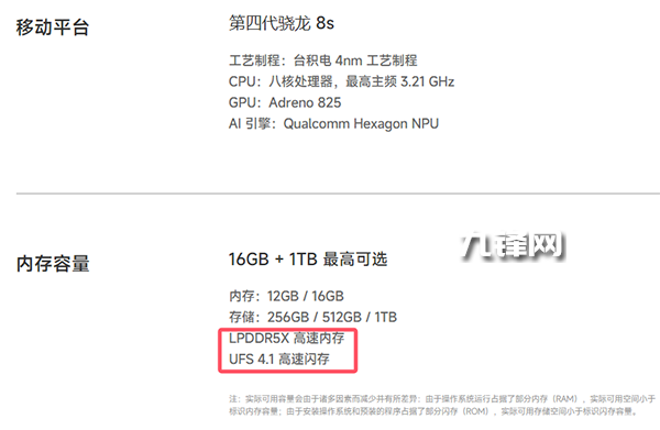 LPDDR5X規(guī)格內(nèi)存+UFS 4.1規(guī)格閃存。