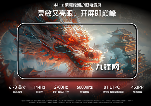 配備榮耀綠洲護眼電競屏,支持九大榮耀綠洲護眼技術(shù),它還支持4320Hz PWM零風險調(diào)光、硬件級圓偏振光護眼,通過德國萊茵TüV全局護眼4.0認證,支持全場景暈動舒緩顯示功能。